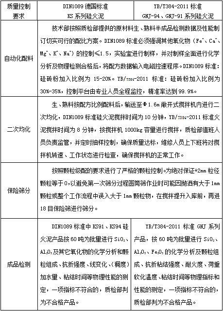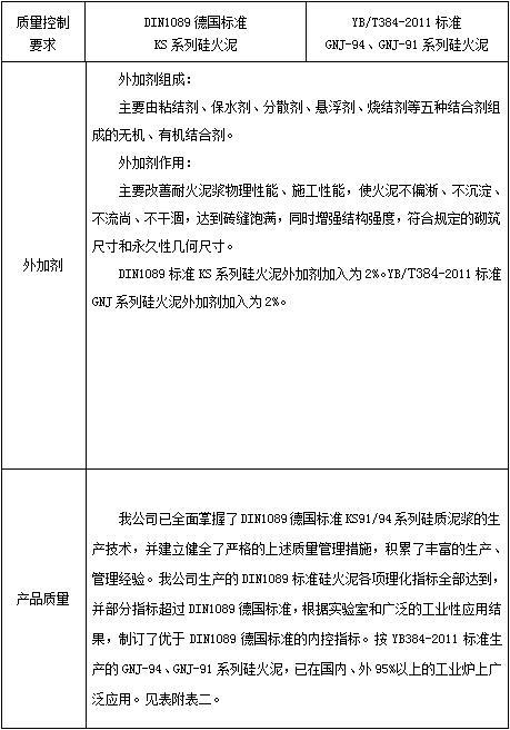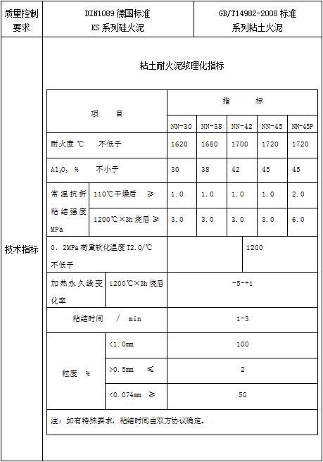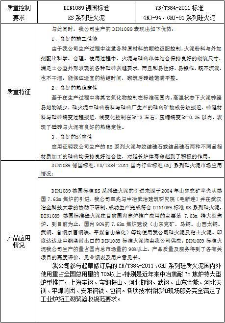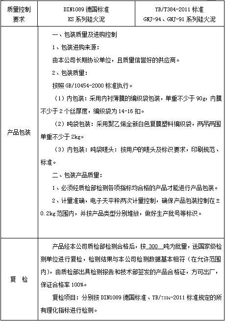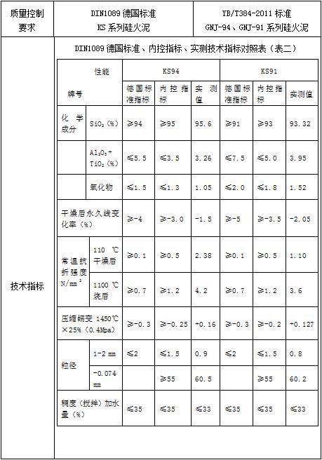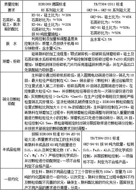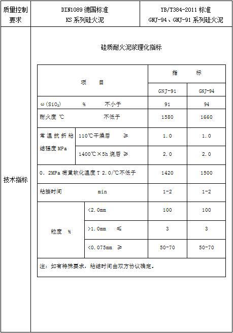 DIN1089德國(guó)標(biāo)準(zhǔn) YB/T384-2011標(biāo)準(zhǔn) GNJ-94、GNJ-91系列硅火泥質(zhì)量控制體系